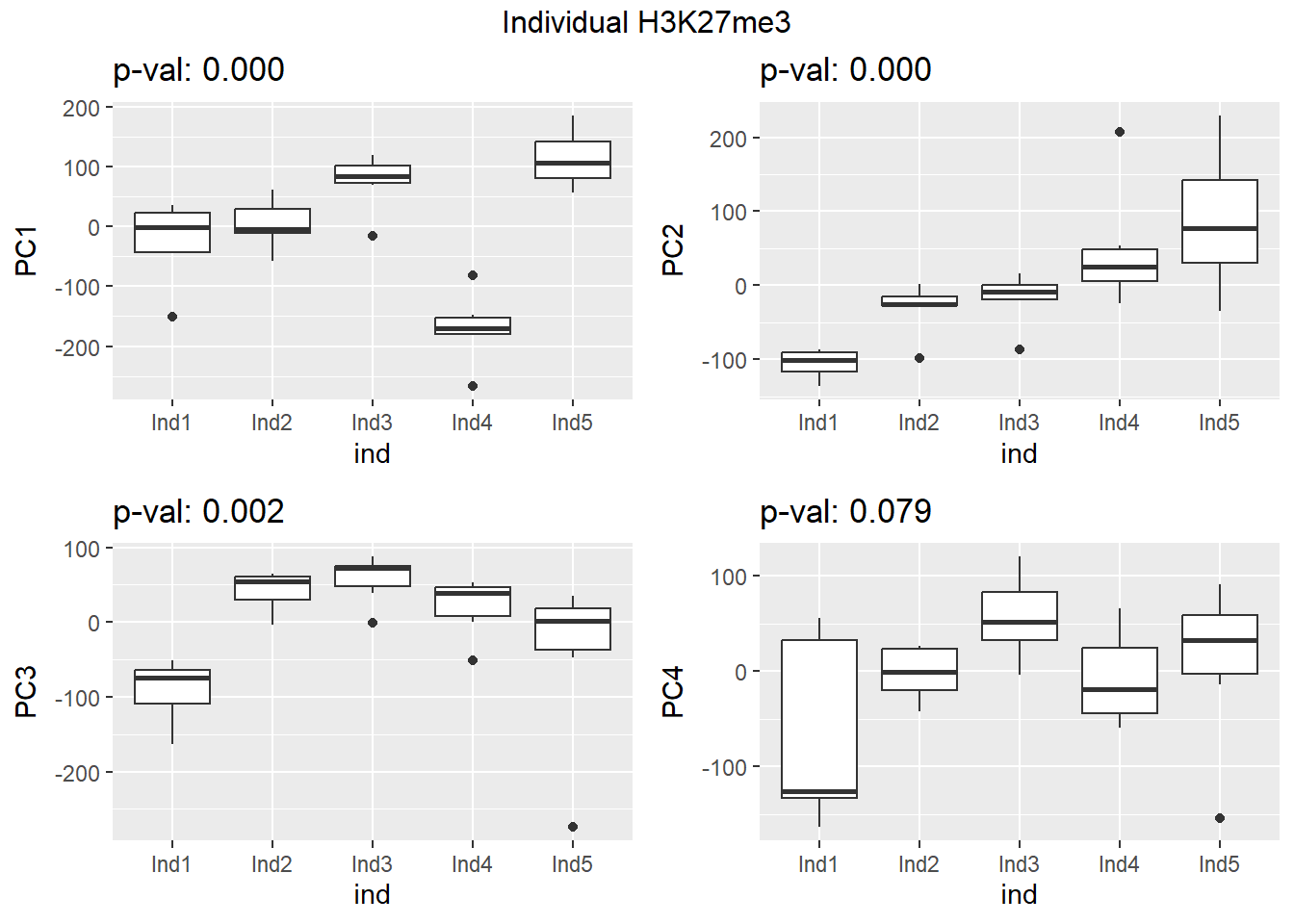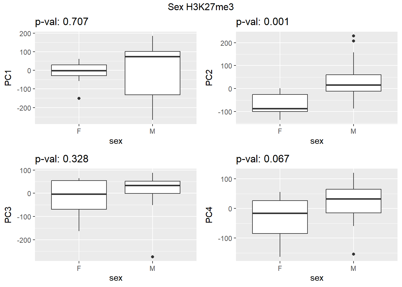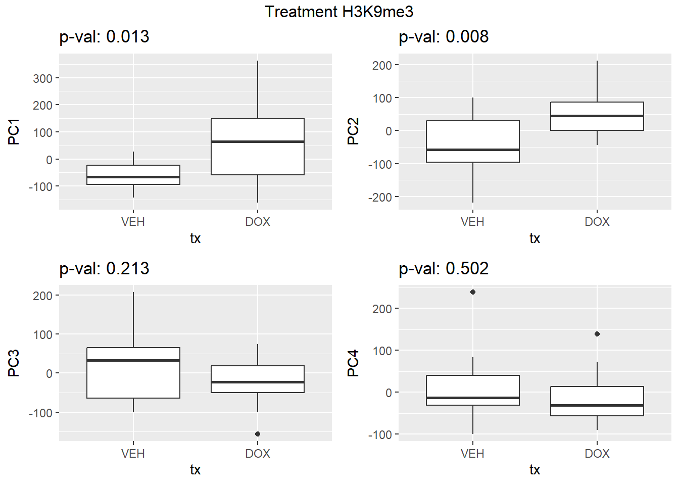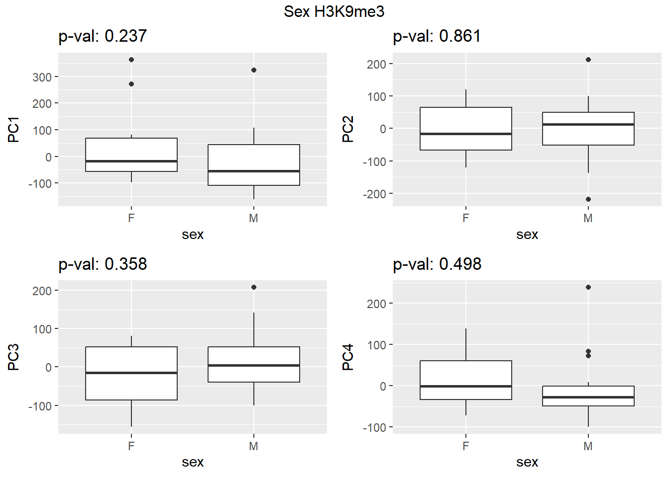 grid.arrange(f_v_pc1, f_v_pc2, f_v_pc3,f_v_pc4, ncol = 2, top = paste0(f_label," H3K9me3"))