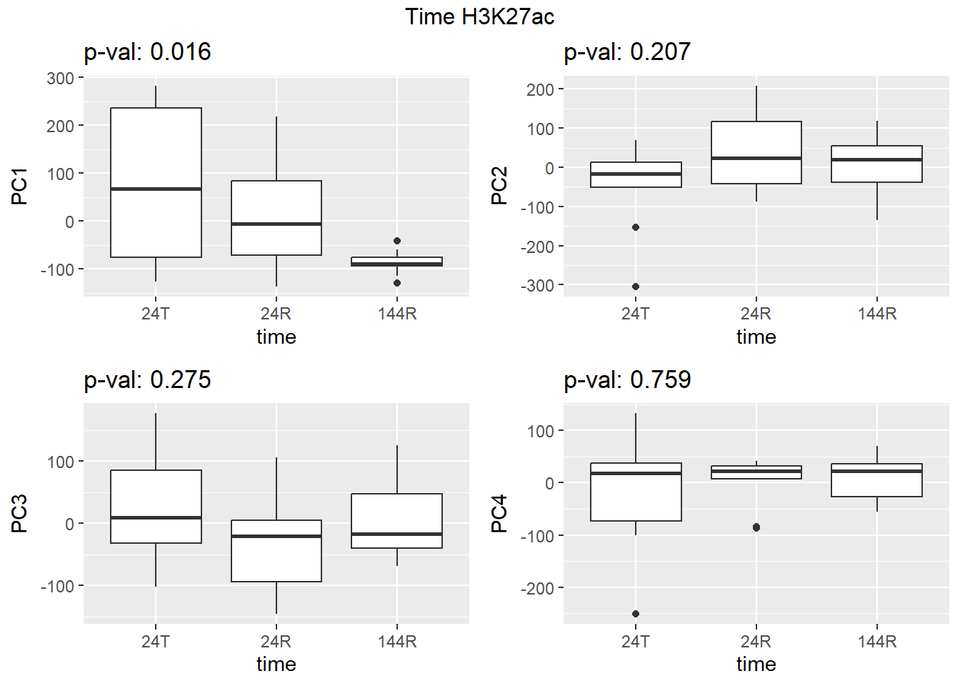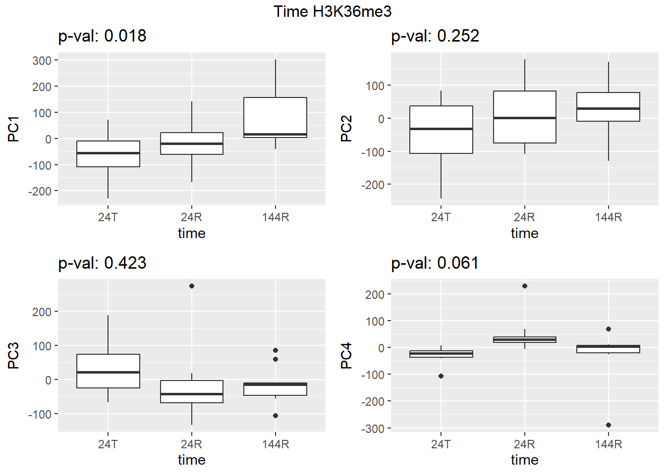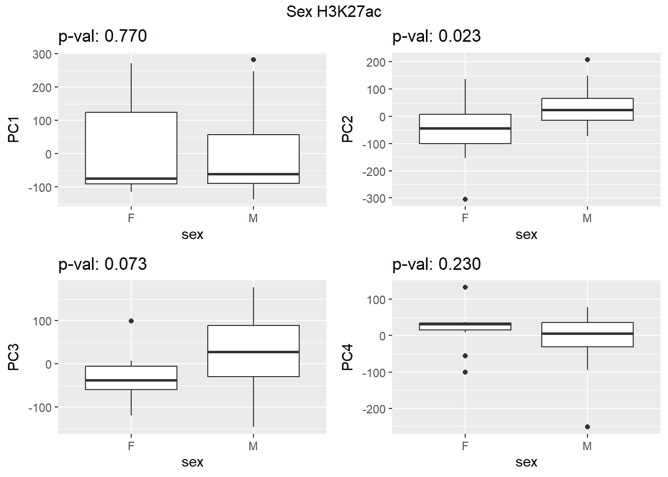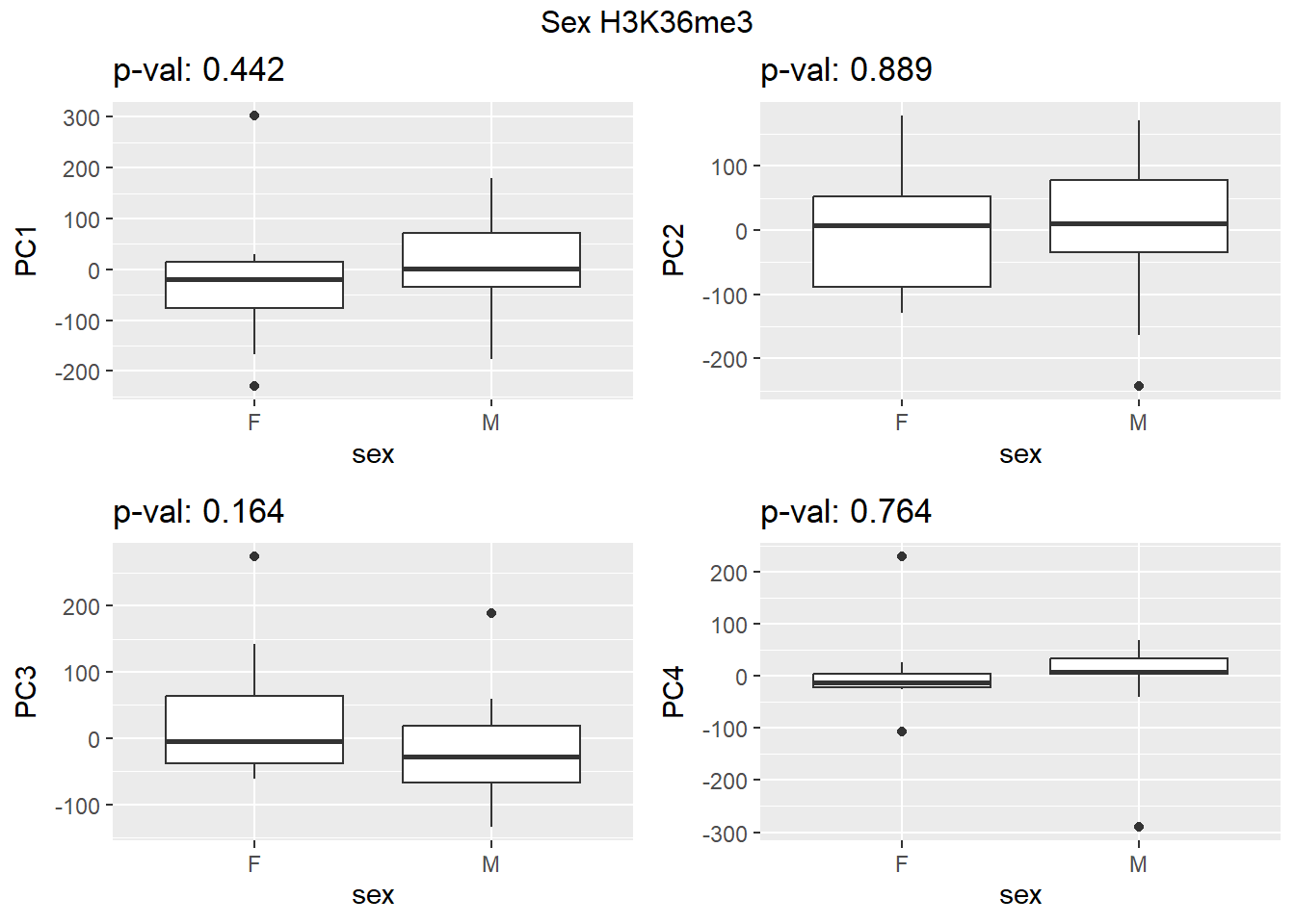 grid.arrange(f_v_pc1, f_v_pc2, f_v_pc3,f_v_pc4, ncol = 2, top = paste0(f_label," H3K9me3"))