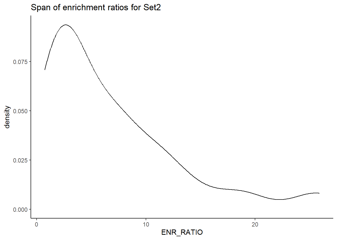 ggtitle(paste("Span of enrichment ratios for Set2"))