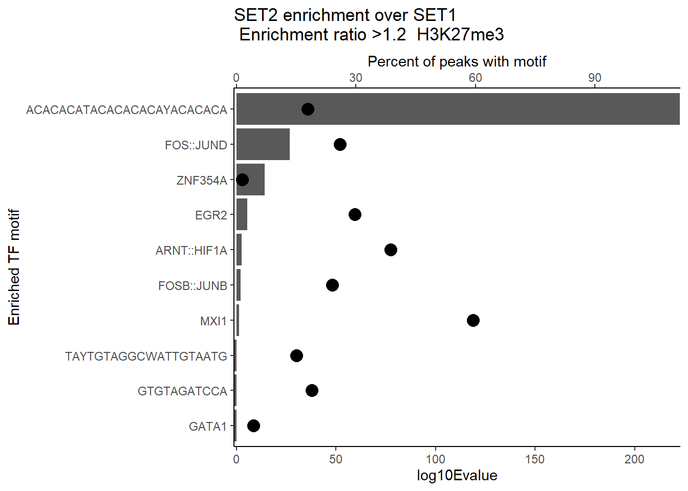 ggtitle(paste("SET2 enrichment over SET1\n Enrichment ratio >1.2 H3K27me3"))